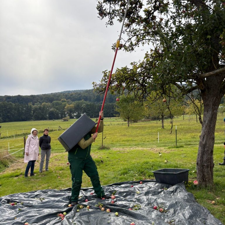 Ein großer Dank geht auch an Sascha Maurer und seine Familie für die Unterstützung beim Lesen, das Keltern und die Weiterverarbeitung zu unserem Saft. Ohne Euch wäre das Ganze nicht möglich.