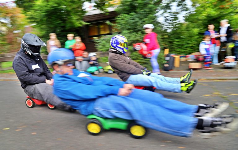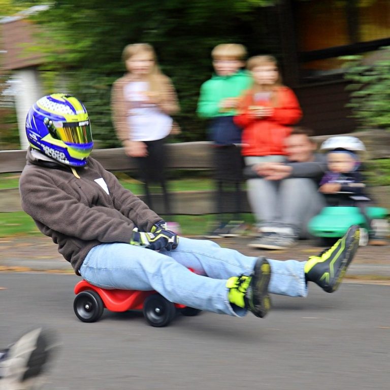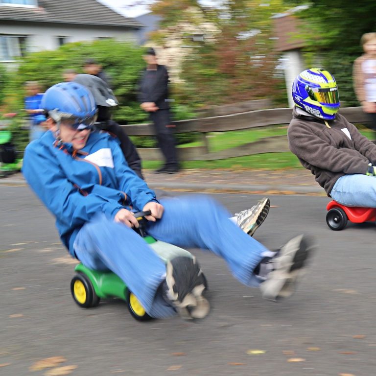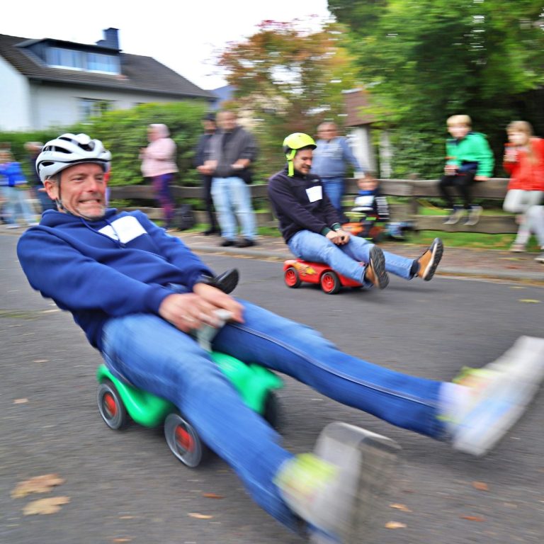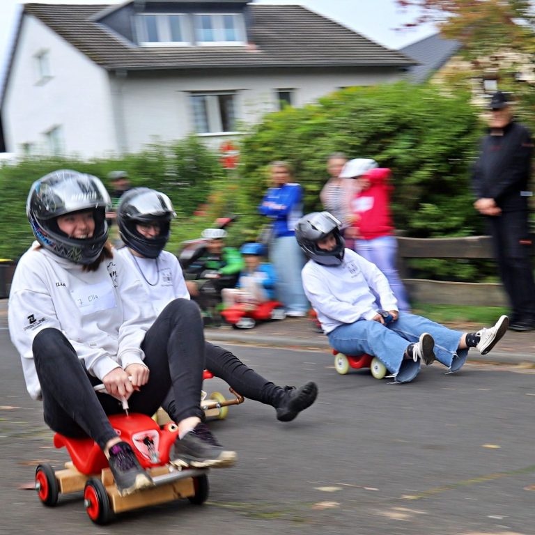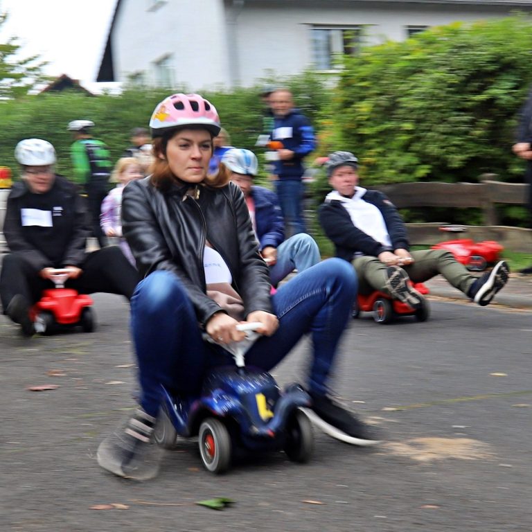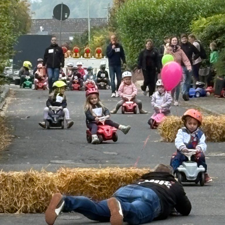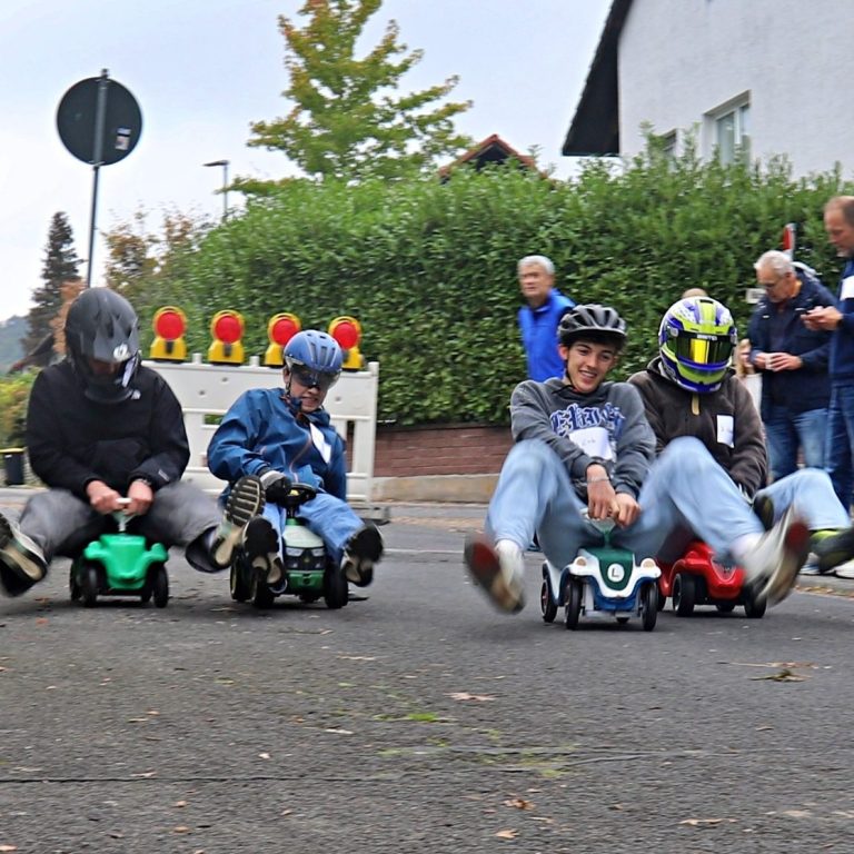 Niederseelbach verwandelte sich am letzten Sonntag im September bei bestem Wetter in eine echte Rennstrecke: Zum ersten Bobbycar-Rennen im Ort traten fast 50 kleine und große Rennfahrerinnen und Rennfahrer „gegeneinander“ an – und sorgten für jede Menge Stimmung, Tempo und Applaus entlang der Strecke. Gestartet wurde am Gemeindehaus im Hahnweg, das Ziel lag in Höhe der Lenzenbergschule.